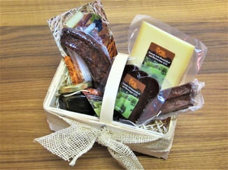 Ob als Firmenpräsent, Mitbringsel oder Weihnachtsgeschenk: Unsere Hofprodukte stellen wir für Sie auch gern als Geschenkkorb zusammen.